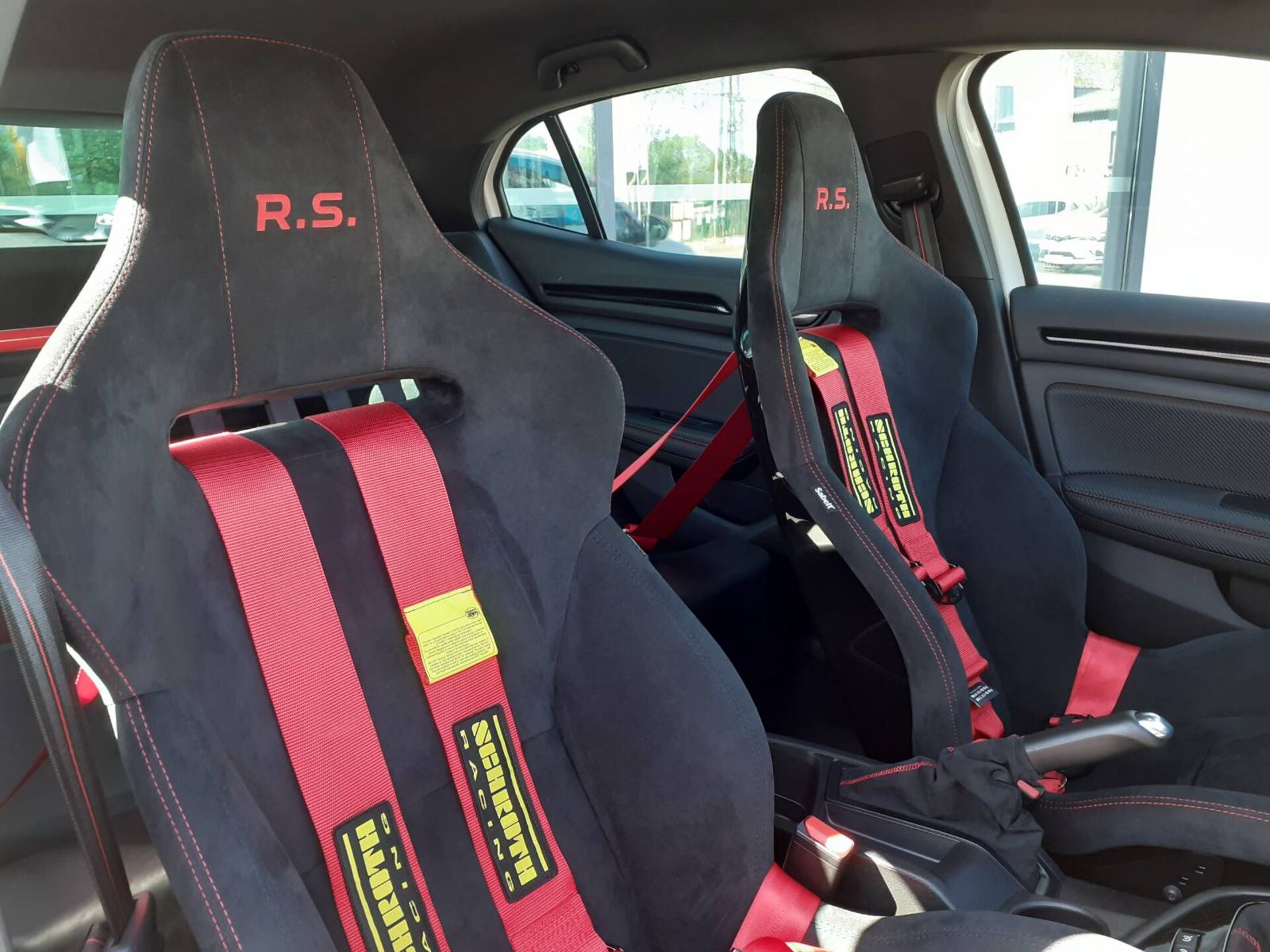 Sièges "Sabelt-Sport" en matériaux composite Alcantara noir et surpiqures rouges